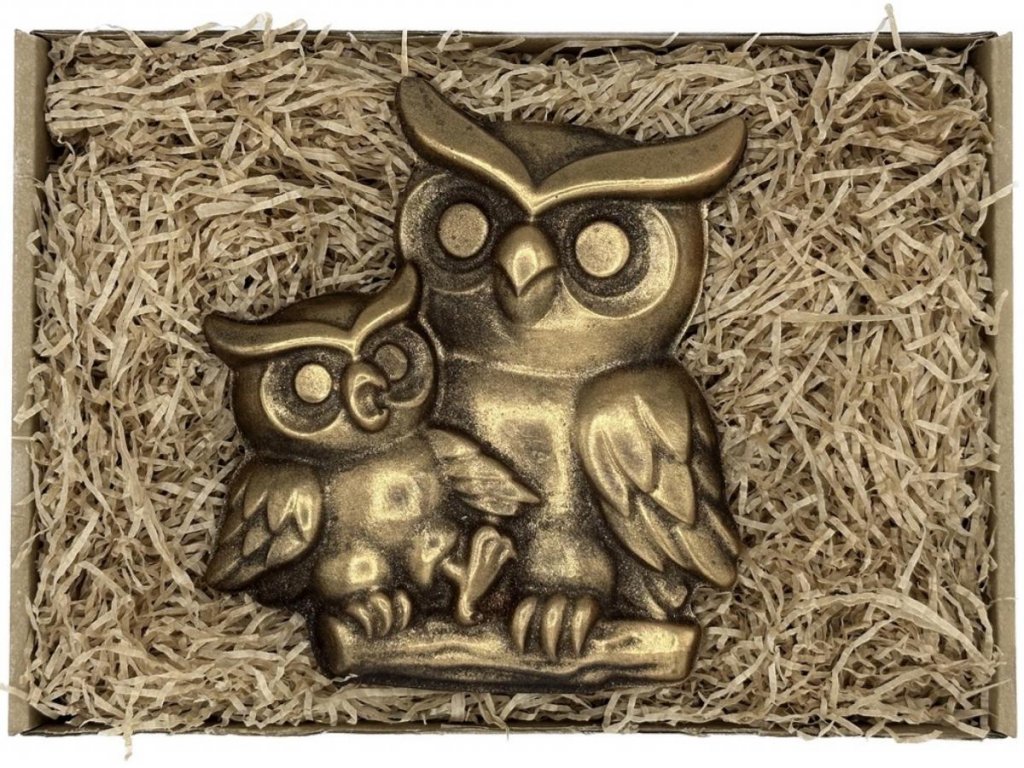 Bagoly a fiókájával aranyos, édes ajándék kicsiknek és nagyoknak. Hagyja, hogy egy darab ebből a csokoládés finomságból elolvadjon a szájában.