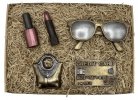 Csokoládékés, őz, szarvas, távcső, kutya, patron, puska, szeszesitalos üveg.