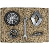 Csokoládé Renault, gumi, kétoldalas kulcs, csapágy, gyertya az autóhoz.